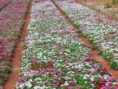 石竹株型低矮,莖稈似竹,葉叢青翠,自然花期5-9月,從暮春季節(jié)可開至仲秋,溫室盆栽可以花開四季?;斏Χ?,單生或成對,也有呈圓錐狀聚傘花序,花徑不大,僅2至3厘米,但花朵繁茂,此起彼伏,觀賞期較長。花色有白、粉、紅、粉紅、大紅、紫、淡紫、黃、藍(lán)等,五彩繽紛,變化萬端。園林中可用于花壇、花境、花臺(tái)或盆栽,也可用于巖石園和草坪邊緣點(diǎn)綴。大面積成片栽植時(shí)可作景觀地被材料,另外石竹有吸收二氧化硫和氯氣的本領(lǐng),凡有毒氣的地方可以多種。切花觀賞亦佳。